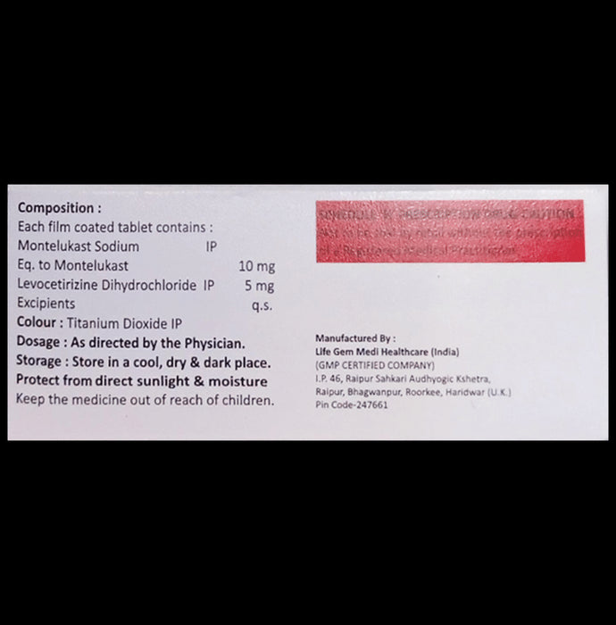 Composition : Levocetirizine (5mg) + Montelukast (10mg)