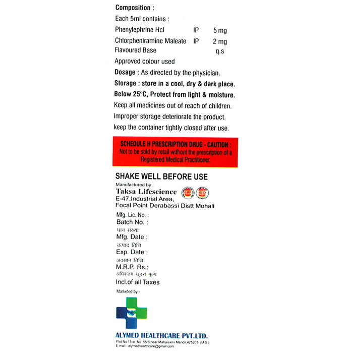 Composition : Chlorpheniramine Maleate (2mg) + Phenylephrine (5mg)