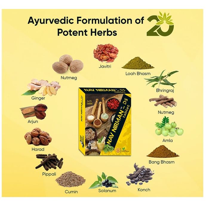 Ambic Nav Nirman-DS Tablet helps in gaining weight naturally. It is a formulation of ayurvedic herbs packed into a tablet that improves strength and stamina. It helps boost your athletic performance naturally. This powerful formulation is very beneficial for bodybuilders.