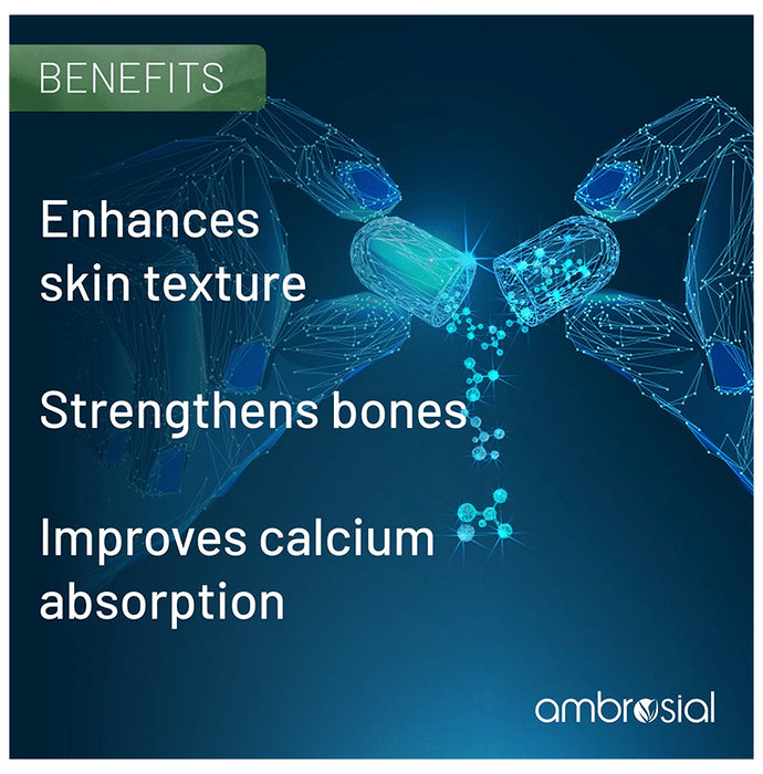 Ambrosial Veg Essentials L-Lysine Veg Capsule works towards the rejuvenation of your health. It enhances skin texture and also strengthens your bones. It improves calcium absorption in your body.
