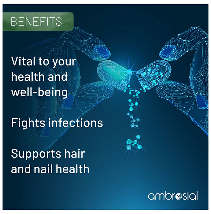 Ambrosial Veg Essentials Selenium Veg Capsule helps to keep you fit and energised. It has elements that are beneficial for your joints, muscles and nails. It is a dietary supplement that fulfils the body's nutrition needs.