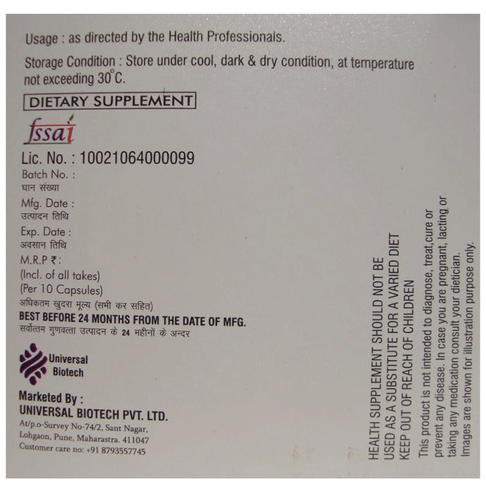 Composition : Each capsule contains:Fructooligosaccharides - 200 mg,L-Glutamine - 100 mg,Bifidobacterium Bifidum - 150 million spores,Bifidobacterium Longum - 150 million spores,Lactobacillus Acidophilus - 300 million spores,Streptococcus Thermophilus - 150 million spores,Zinc - 7.5 mg,Excipients q.s.,Other Ingredients: Hard Gelatin Capsule Shells, Aerosil, Lactose, Talcum, Class IInd Preservative