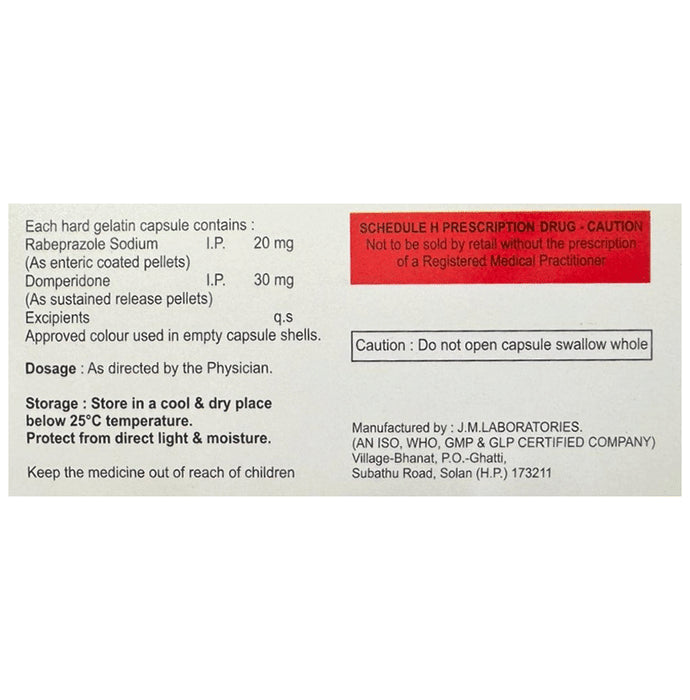 Composition : Domperidone (30mg) + Rabeprazole (20mg)