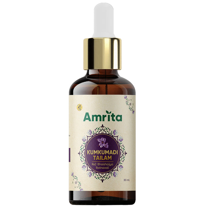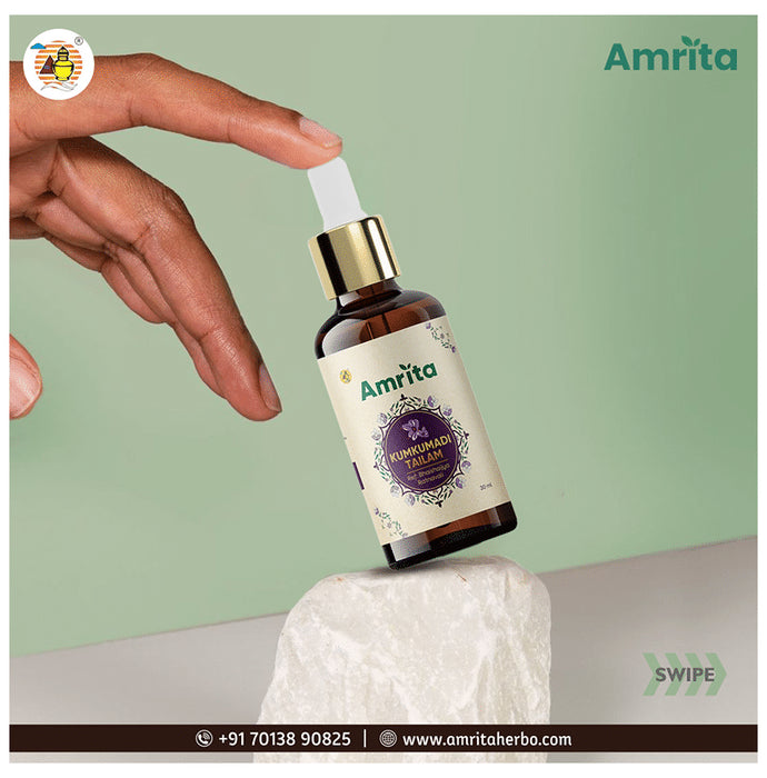 Amrita Kumkumadi Tailam is a combination of herbs that provides cosmetic and therapeutic benefits for the skin. It can be used as a cleanser, toner and moisturiser.