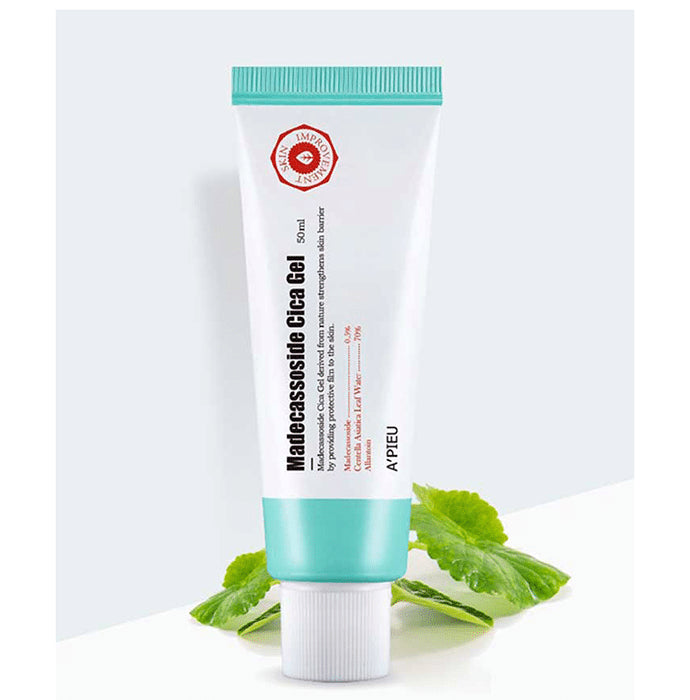 A'PIEU Madecassoside Cica Gel helps to keep skin moisturised and protects it from drying out. It protects the skin from damaging UV rays and helps to prevent fine lines and wrinkles from appearing. It contains Madecassoside, which reduces redness and inflammation and may help to restore photodamaged skin.