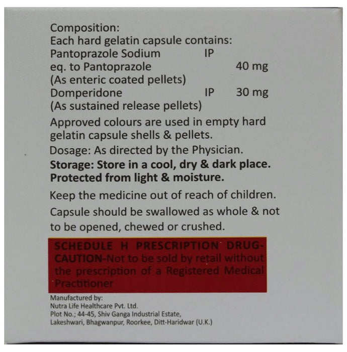 Composition : Domperidone (30mg) + Pantoprazole (40mg)