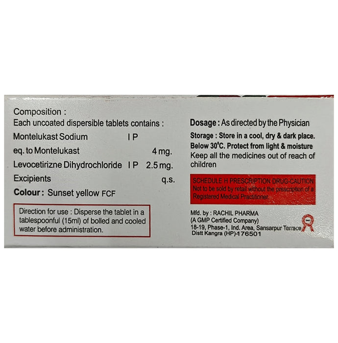Composition : Levocetirizine (2.5mg) + Montelukast (4mg)