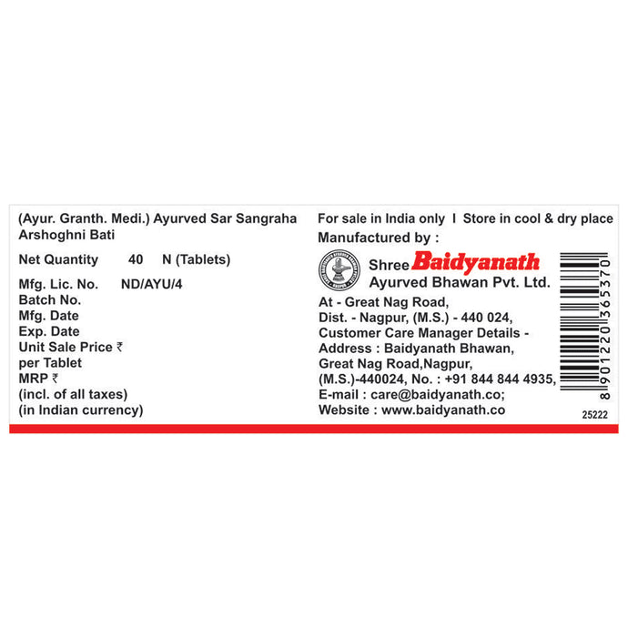 Baidyanath Nagpur Arshoghni Bati is a herbal Ayurvedic medicine useful for piles. It is useful for reducing the symptoms of both types of piles. Besides, it is used to control constipation.