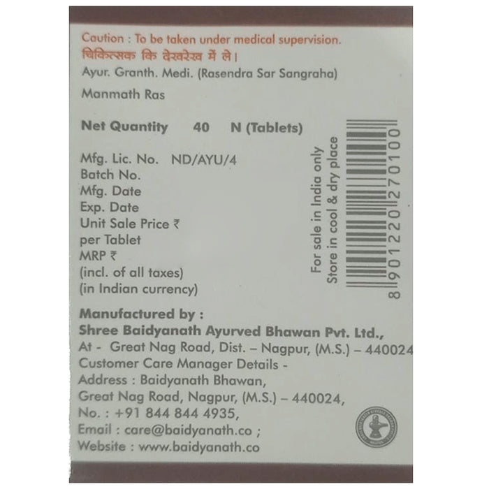 Baidyanath (Nagpur) Manmath Ras is an ayurvedic formulation which helps to reduce fatigue by increasing energy levels of the body in both men and women. It is helpful for increasing working capacity and physical strength. It is useful for managing vigour and stamina in both sexes.