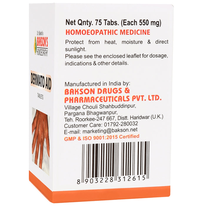 Bakson's Dermato Aid Tablet is a blend of potent ingredients that help with skin complaints including itching, eczema conditions, pimples, rash and urticaria. It provides complete skin protection and helps relieve symptoms of Psoriasis.