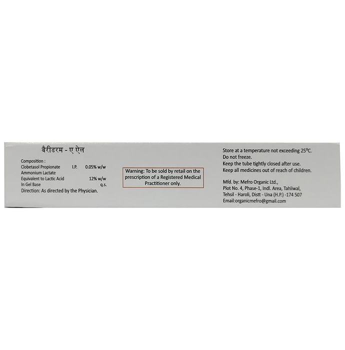 Bariderm-AL Gel is a combination of two medicines: Clobetasol and Ammonium Lactate which treat skin infection. Clobetasol is a steroid medicine. It blocks the production of certain chemical messengers (prostaglandins) that make the skin red, swollen and itchy. Ammonium Lactate is a skin protectant which works as a moisturizer and relieves minor skin irritations.