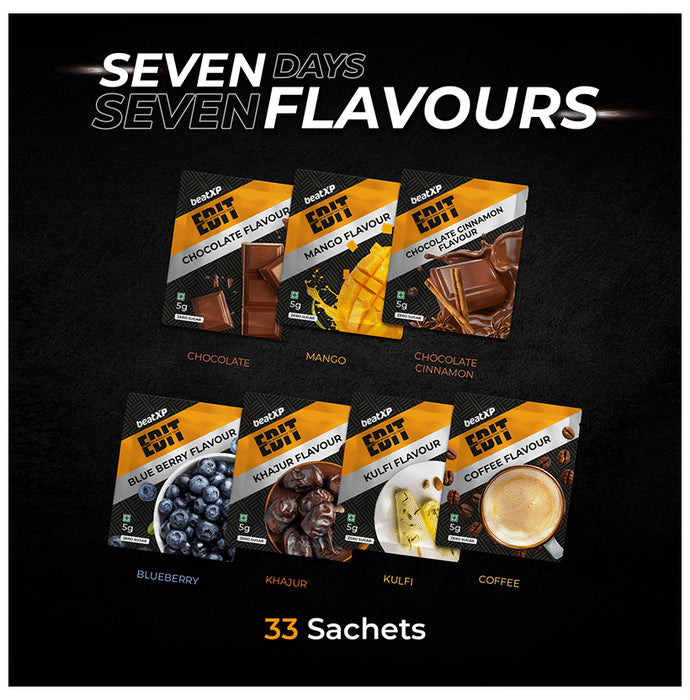 beatXP Powder EDIT 100% Whey Concentrate ProteinEDIT comes with a 1 kg protein jar and a sachet box of 33 different flavour sachets to add a new flavour to your protein powder. EDIT has raw materials directly imported from Glanbia US Inc.. and provides 24g of protein per serving. The added DigeZyme ensures rapid and smooth protein absorption.