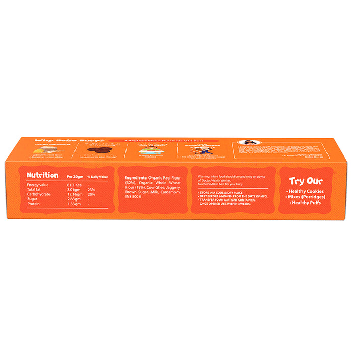 Bebe Burp 8M+ Cookie RagiRich in calcium these ragi cookies are perfect for babies and new mama's to snack on while nursing. Its soft texture makes it perfect as a toddler teething biscuit too. These biscuits contain no refined sugar, no refined flour, no artificial preservatives, no hydrogenated oils, no chocolate, and no artificial flavour or colour.