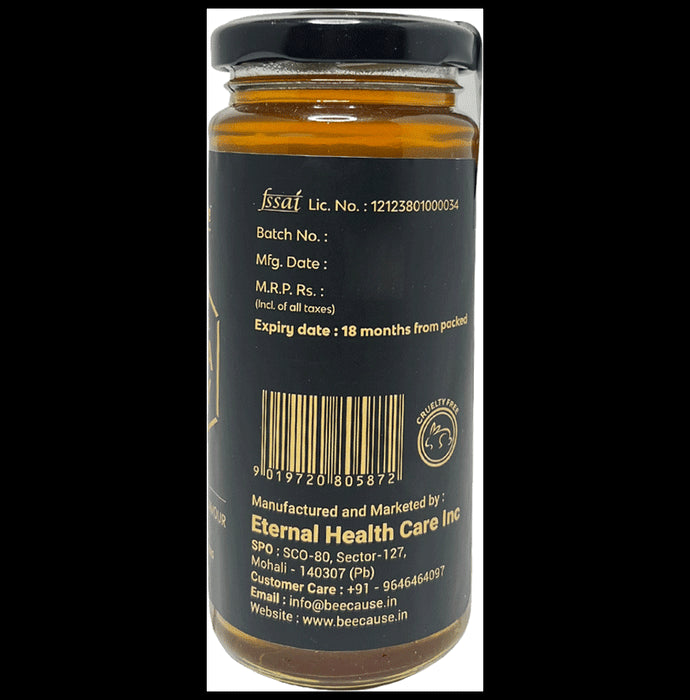 Bee Cause Acacia Honey is a premium raw honey produced by bees that pollinate the flowers of the black locust tree, also known as the Babool tree. It is known for its distinct clarity, pale hue, and thick, sticky and liquid consistency. The honey is sourced sustainably and is a pure and natural product.