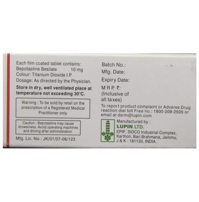 Beipos Tablet belongs to a group of medicines called antihistamines. It is used to relieve the symptoms such as sneezing, runny nose, itchy or watery eyes, and sore throat caused due to allergies. Beipos Tablet may be taken with or without food. The dose may vary depending on what you are taking it for. Take it as it has been prescribed by your doctor. You may need this medicine only on days you have symptoms, or you may need to take it every day to prevent symptoms from happening. If you stop taking it earlier than advised, your symptoms may come back. This medicine is generally very safe.Before taking it, you should tell your doctor if you have any problems with your liver or kidneys or with your heart as antihistamines can cause your heart to beat faster.Pregnant or breastfeeding women should also consult with their doctor before taking it. Avoid drinking alcohol as it can cause excessive drowsiness with this medicine. It usually does not impair your ability to drive, but you should not drive if it makes you feel sleepy or dizzy.