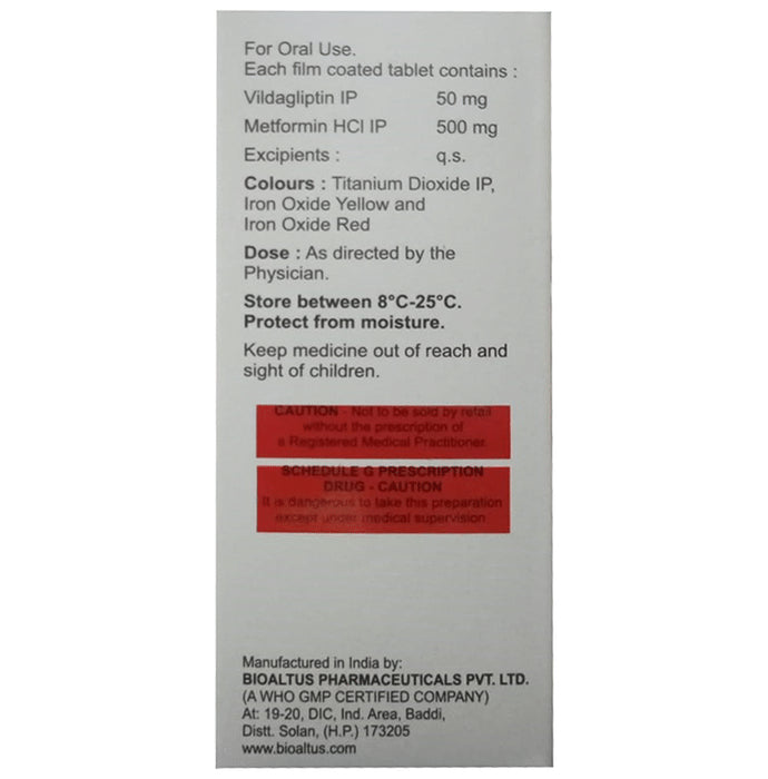 Composition : Metformin (500mg) + Vildagliptin (15mg)