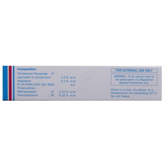 Composition : Adapalene (0.1% w/w) + Clindamycin (1% w/w)