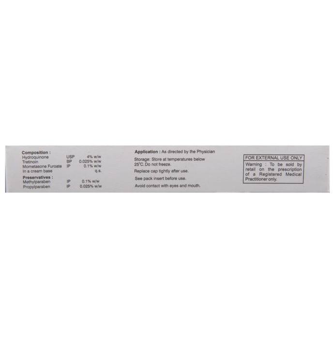 Composition : Hydroquinone (4% w/w) + Mometasone (0.1% w/w) + Tretinoin (0.025% w/w)