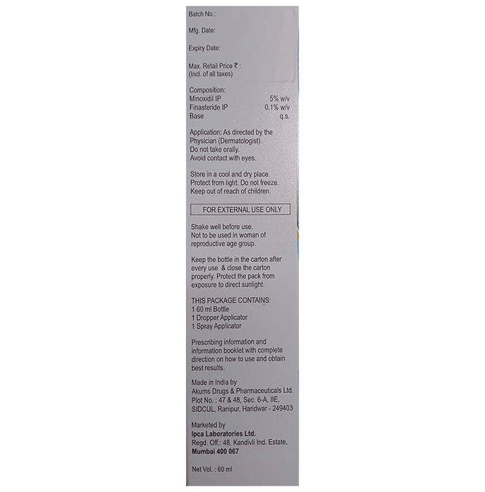Composition : Minoxidil (5% w/v) + Finasteride (0.1% w/v)
