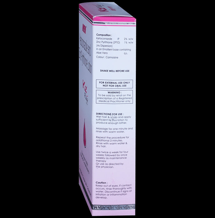 KZ Plus Lotion is a combination of two antifungal medicines: Ketoconazole and Zinc pyrithione. It works by destroying the cell membrane of fungi that cause dandruff.