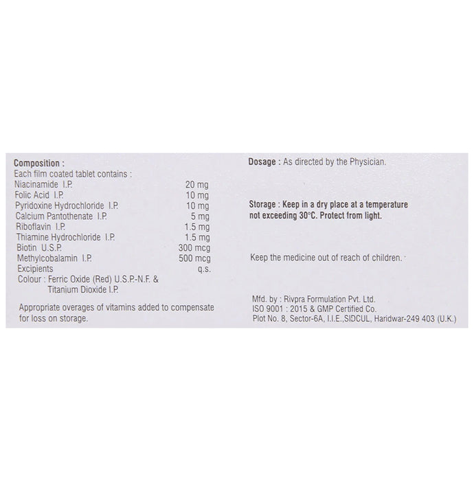 Composition : Biotin,Calcium pantothenate,Folic acid,Vitamin B1, Vitamin B2, Vitamin B3, Vitamin B6,Methylcobalamin